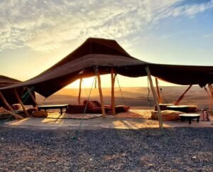 Conclude your unforgettable day with a delightful dinner show set in a traditional Moroccan tent or under the stars. Savor a delicious meal featuring classic Moroccan dishes like tagine and couscous, accompanied by refreshing mint tea. The evening comes alive with vibrant entertainment, including live music, belly dancing, and folklore performances, allowing you to fully embrace the rich culture of Morocco in a magical desert setting.