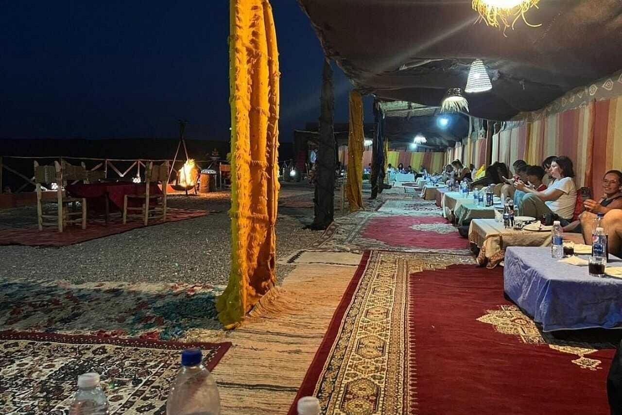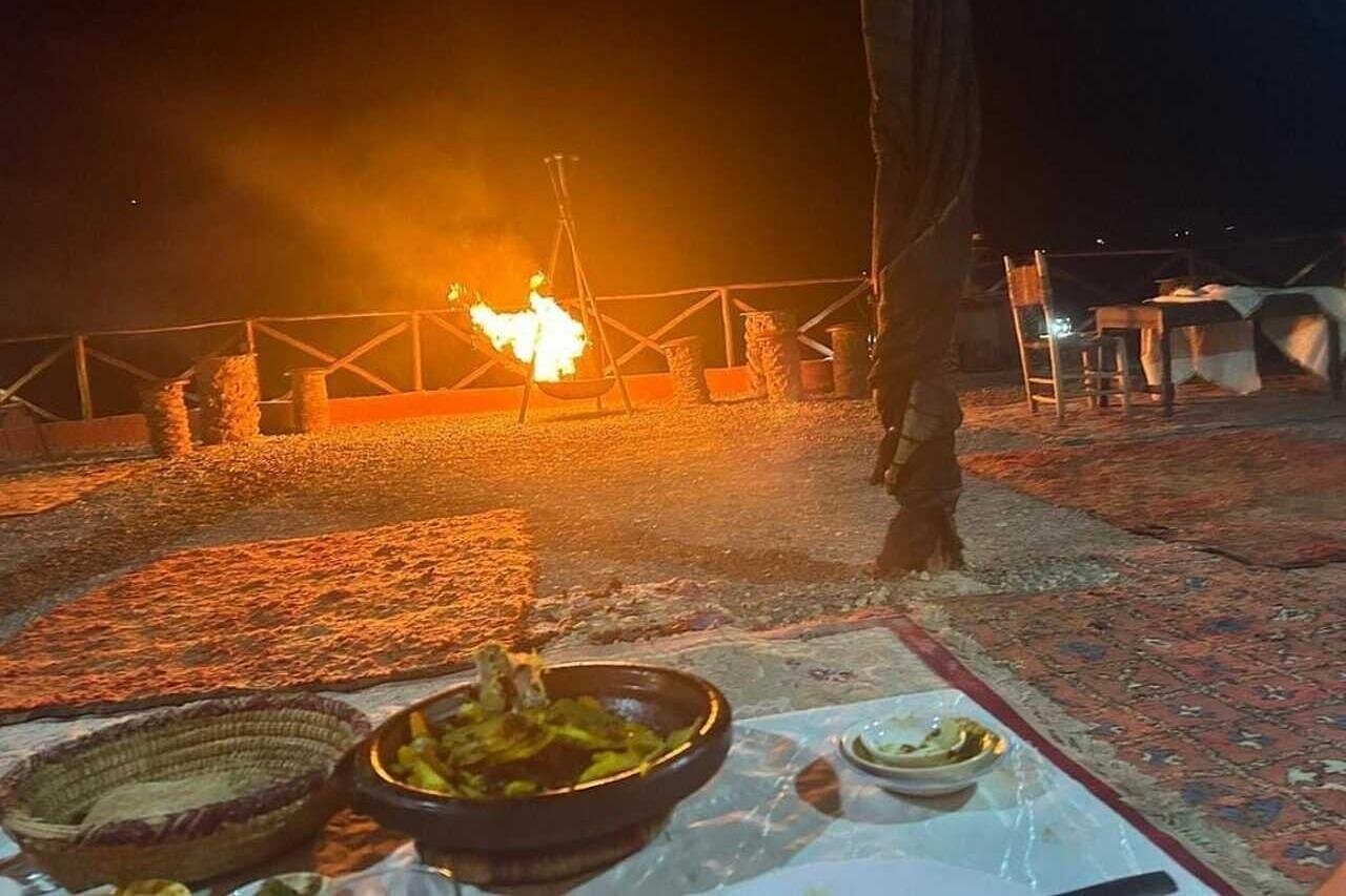 Moroccan Cuisine: Enjoy a delicious traditional Moroccan dinner, which may include dishes like tagine, couscous, and various local specialties, often accompanied by mint tea.